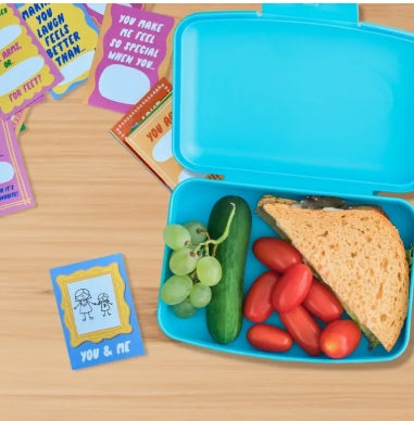 This cute little box contains 40 different colorful, prompted cards to create silly notes, coupons or drawings for your kiddos, on even the most hectic mornings. Perfect to stick in a lunchbox or backpack! Hey, kid! "Would you rather?" "I'm so proud of you when you ___" "A silly drawing to make you smile" ABOUT • 40 prompted notecards, printed front and back • Illustration and copy by Kiwi Schloffel; a design collaboration with Meghan Hopkins Sokorai
