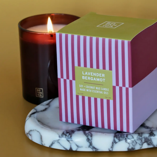 A classic combination- Lavender Bergamot combines the soothing notes of lavender with clean and fresh bergamot, making an ideal all-seasons candle for your space. The Botanica Essentials Candle Collection features pure essential oils, balanced with nuanced fragrance oils to create provocative and true-to-nature scents.