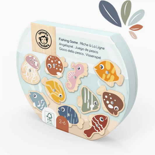 These colorful wooden fish can be hooked up by the magnetic rod and once safely attached, lowered back onto the wooden board. Requires skill and concentration to catch each fish. Helps to develop dexterity and co-ordination.