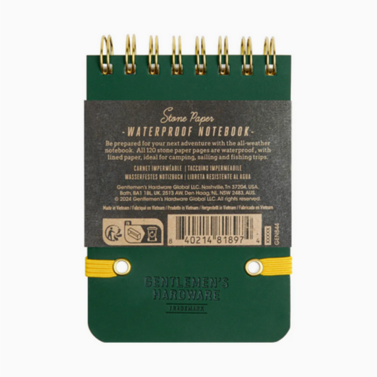 Be prepared for your next adventure with our all-weather pocket notebook with lined stone paper. Ideal for camping, sailing or fishing trips. 120 pages.