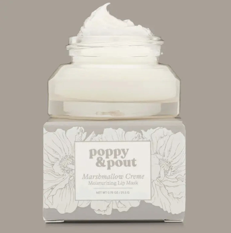 Marshmallow Creme is perfect for any sugar lover! The same sugary sweet flavor that you know and love is now available in a hydrating overnight lip mask. Poppy & Pout's Hydrating Lip Masks are the perfect way to prep your pout for smooth, hydrated lip balm application. We use a clean combination of natural ingredients to hydrate your lips. Net Weight: 0.65 oz / 18.4g