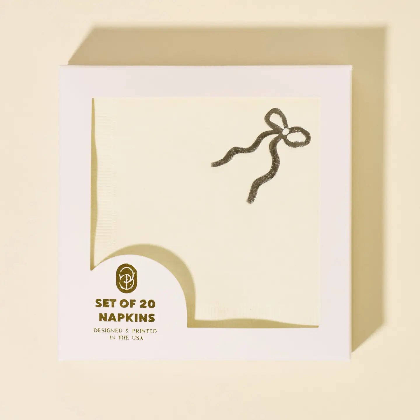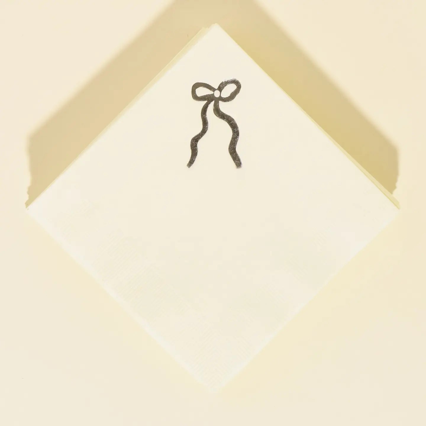 Elevate your next gathering with these elegant cocktail napkins, featuring a refined silver bow on a creamy background—perfect for adding a touch of sophistication to every sip and snack.