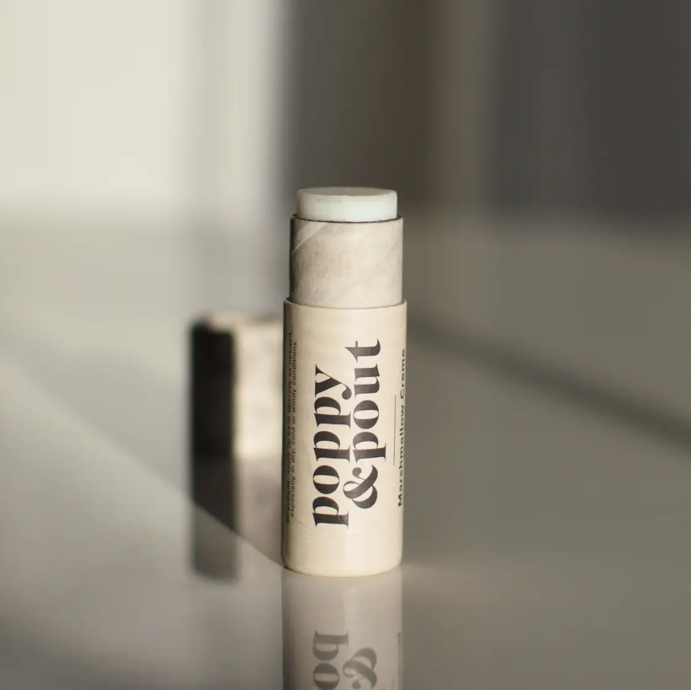If you’re looking for something a little more on the sweet side, our Marshmallow Creme lip balm is for you! It’s the perfect way to hydrate your lips and will leave you feeling sugary sweet! Every Poppy & Pout lip balm is made with 100% natural ingredients and hand-poured into eco-friendly paper tubes!